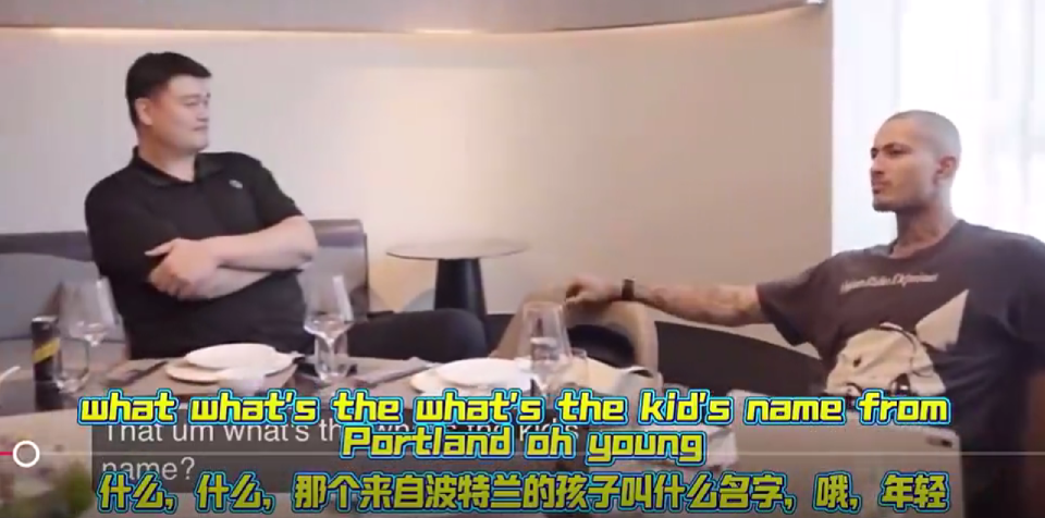 在酒宴上,库兹马主动问姚明,“什么,那个来自波特兰的孩子叫什么名字?哦,Young?”