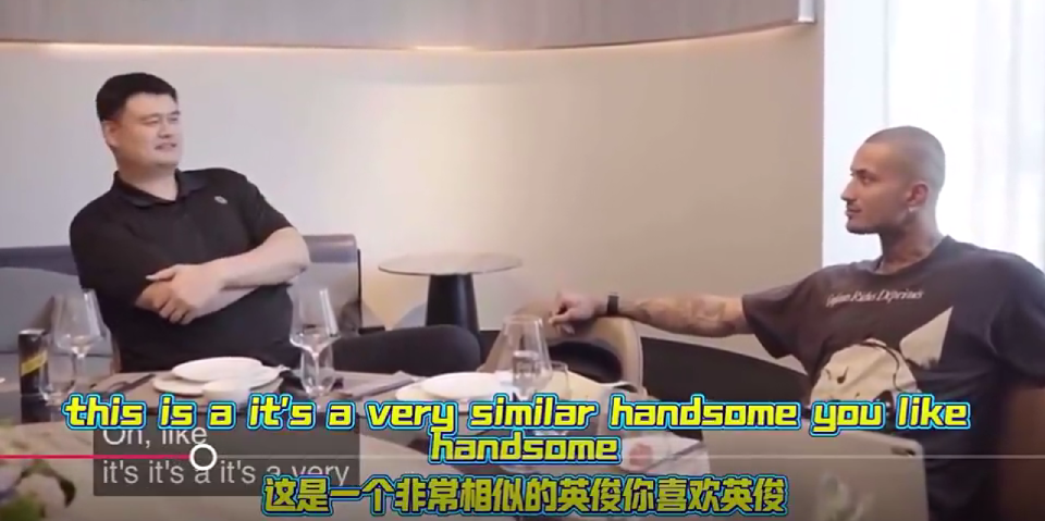 姚明主动开始当老师,“杨,就是尼克-杨的杨,瀚森就像英文'Handsome’,英俊帅气!你肯定喜欢英俊,英俊潇洒。这在中文里是完全不同的意思。”